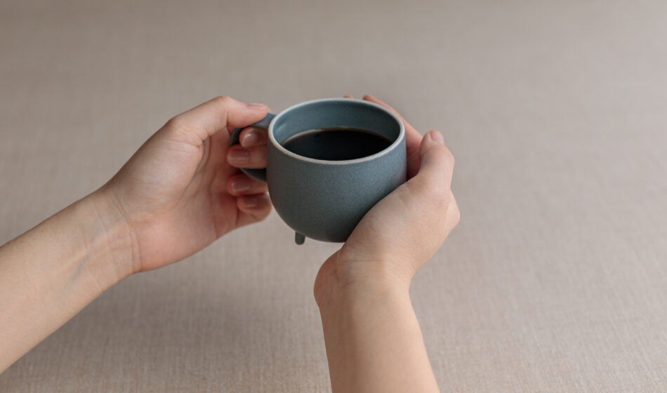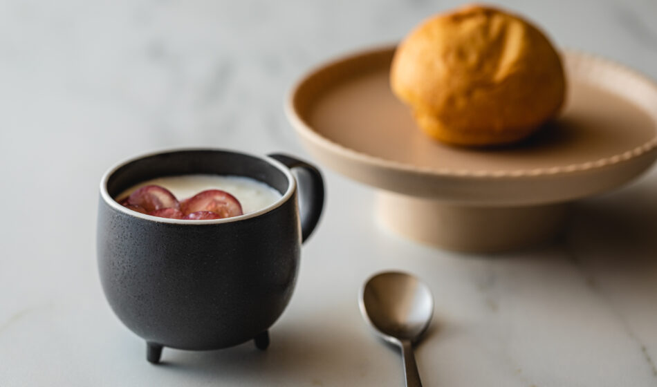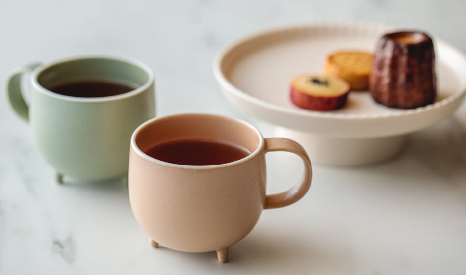 一杯が自然に混ざり合う、まあるいフォルムの脚付きマグ